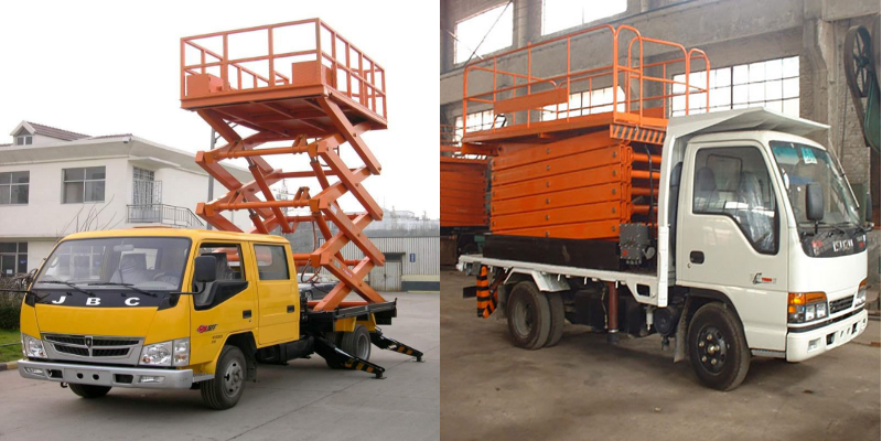 Aerial work equipment for mounting a lift on a car. By special chassis, working arm rack, three-dimensional full swing mechanism, flexible clamping device, hydraulic system, electrical system and safety device, etc.. Special equipment for high-altitude operation, which is composed of a lift and a battery car. It uses an automobile engine or the original DC electric power, without external power supply, can drive and drive the lifting platform, it is convenient to move, operation flow range, the product has no pollution, no exhaust, large operating range, strong liquidity. Especially suitable for cold storage, crowded area (railway station, bus station, airport). Widely used in urban construction, oil field, traffic, municipal and other industries. According to the individual requirements with blackout emergency lowering device, balance valve, automatic pressure safety device, to prevent the aerial lift platform overload safety device, leakage protection device and phase protection device, to prevent the explosion proof safety device for hydraulic pipeline rupture. mounted.